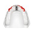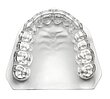 Wenn Sie harte Materialien tiefziehen möchten, kann es beim Entformen der Folien zum Abbrechen der Zähne kommen, deshalb empfehlen wir die Verwendung von Duplikatmodellen. Ziehen Sie ISOFOLAN® als Isolierung tief, schneiden die Folie am Modellboden ab und perforieren sie interdental. Betten Sie das Modell dann in Granulat ein, um einen zu langen Streckweg der Folie zu vermeiden. Die Frontzähne sollten je nach Indikation entweder zur Schwenkachse oder zur Verschlusswelle zeigen, damit sich die Folie optimal adaptieren kann.