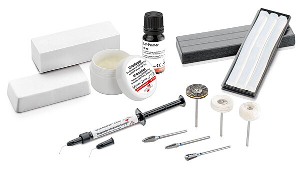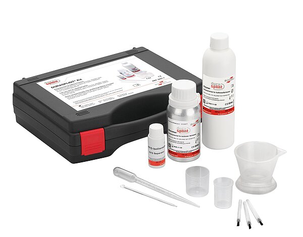 Inkl. 2 Teleskope, 4x DURAN® (2,0 mm), 4x ISOFOLAN®, DURASPLINT®-Kunststoff, 4 Befestigungsteile mit O-Ring, 4x SCHEU-Anker, Alastikkette, Silikonschutzschlauch, Sicherheitsdehnschlüssel, SD-Box zur Aufbewahrung beim Patienten, Okklusionstrainer, 2x CETRON® Reinigungspulver à 15 g, Herstellanleitung und Patienteninformation.