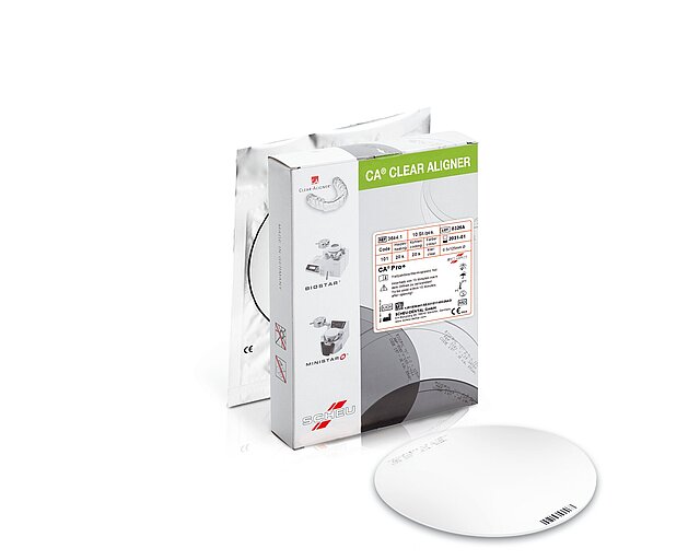 Dreischichtige Alignerfolie mit flexiblem Elastomerkern in einer hartelastischen Doppelschale für eine kontinuierliche Kraftübertragung mit minimalem Kraftverlust. Die flexible Elastomerschicht sorgt für eine hohe Elastizität und Bruchsicherheit bei reduzierter Initialkraft und entsprechend angenehmem Tragekomfort.