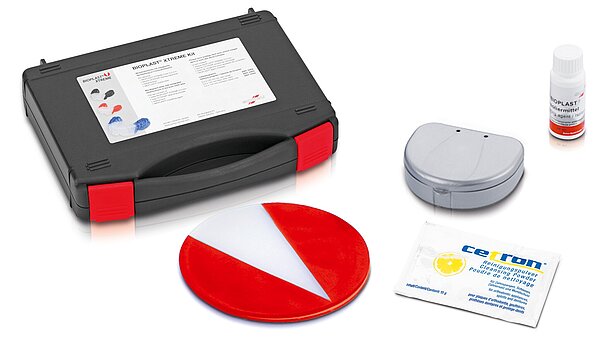 Insulation for plaster models when using BIOPLAST® material for fabricating positioners and mouth guards. BIOPLAST® insulating agent provides absolute transparency and smooth inner surfaces. Also available in practical 100 ml applicator bottle for quick and non-drip insulation of plaster models (including 3 tips).